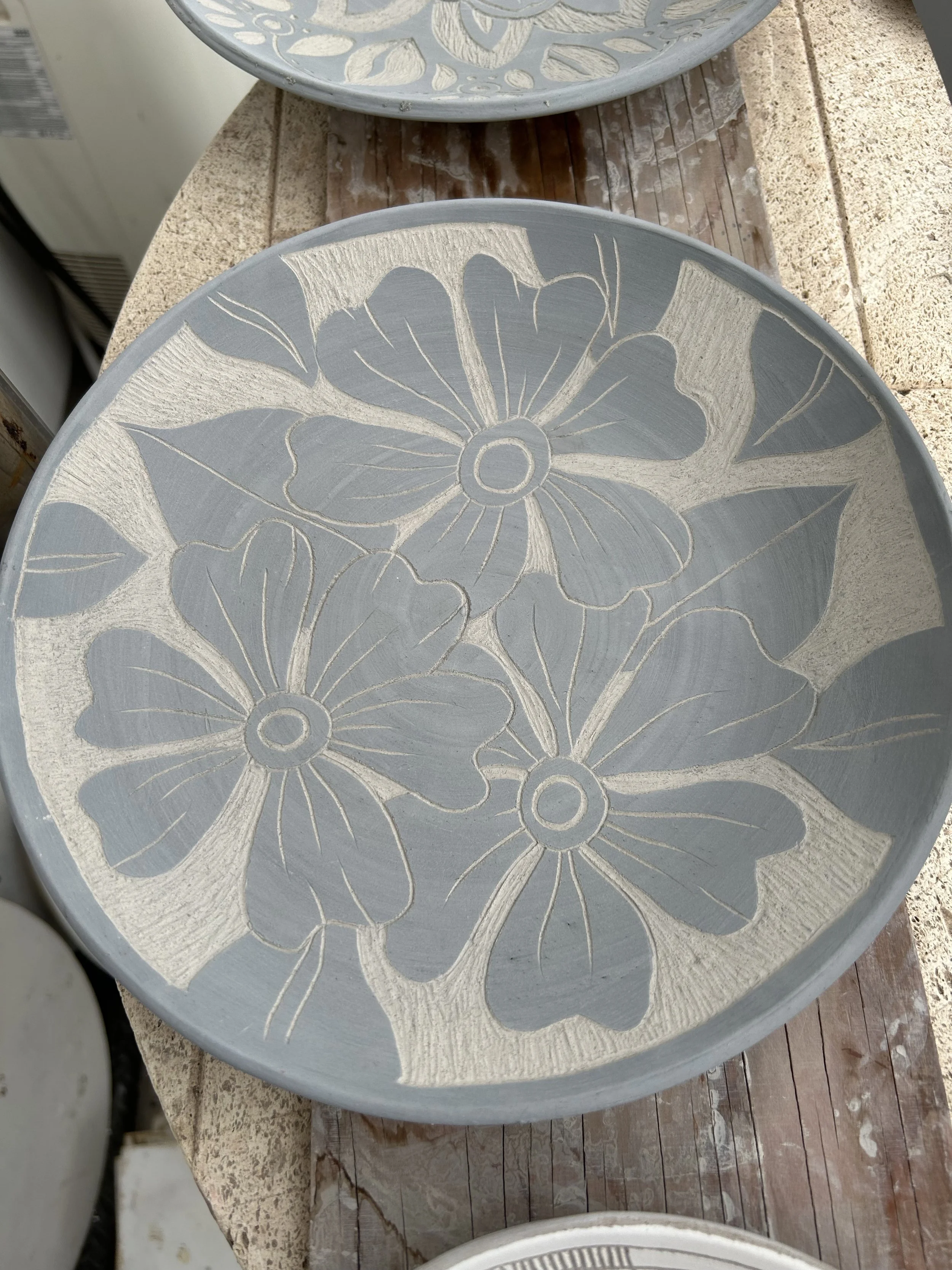 Back to clay for the late spring and early summer. These are some 10” sgraffito plates I’ve been working on.